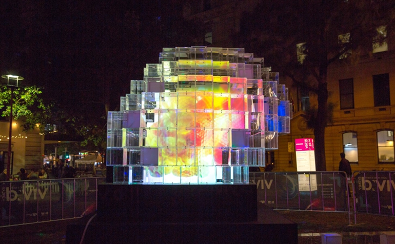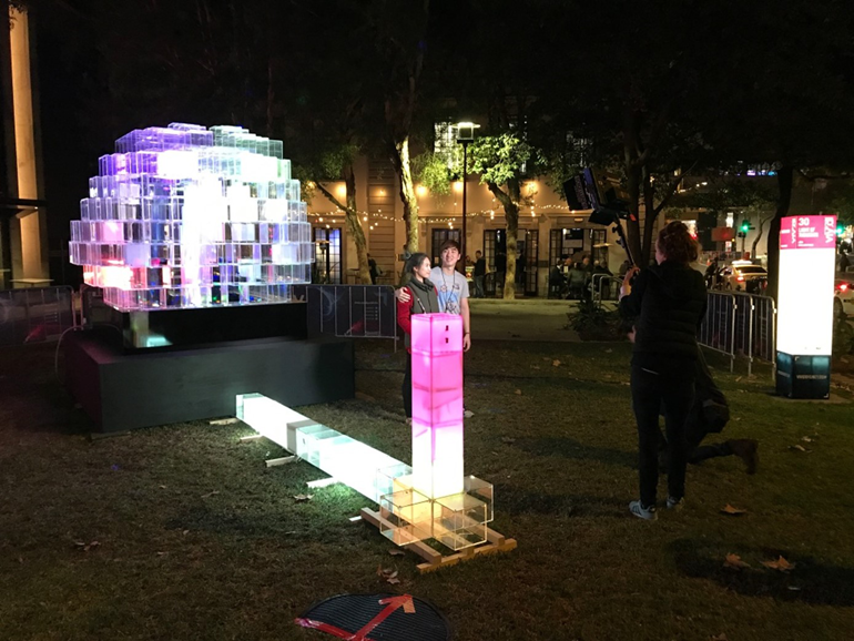 This lighting installation, a crystal ‘brain’ composed of 272 acrylic cubes, was designed to symbolize the contrast and harmony between the left and right brain through the integration of light, sound, and art. As project manager and lighting designer, our team was responsible for securing sponsorships, obtaining engineering approvals, managing production and installation, and overseeing on-site maintenance. Despite the challenges posed by the sculpture’s complexity, extreme weather conditions, and logistical hurdles with transportation and storage, the project gained significant recognition. We successfully secured sponsorships from major enterprises such as Hitachi, Apple, Huawei, Xiaomi, and PAK Lighting, and received coverage from 10 media outlets. The sculpture was also selected as one of the top nine designs at the 2017 Lighting Sculpture Design Awards and was later exhibited at NeuRA during Mental Health Week after its debut at Vivid Sydney.